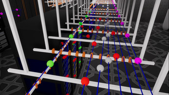 - Visual networking: see packets as colored balls per customer, making flow, congestion, and capacity instantly readable.